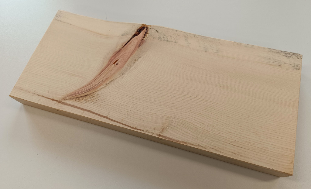 Egyedi megjelenés, a fa sajátosságaival. Lehetnek benne csomók, repedések, a képeken mindez látszik.
